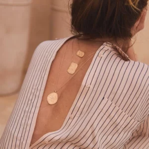 Chaque création est un hymne des sens à la lumière pour mettre en beauté les femmes. La marque a choisi de travailler le laiton plaqué or 3 microns 18 carats pour une tenue optimale. La couleur de l’or, champagne et mate est la véritable signature de la marque : élégante et subtile.