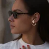 « Ce bijou d’oreille, au design croisé et minimaliste, s’enroule telle une sculpture autour de l’oreille. »