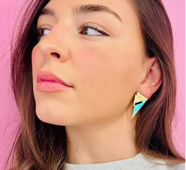 Création exclusive de la marque Tell Mee – la paire de boucles d’oreilles Miami Mini est très design, épurée et légère.