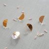 Plexiglass recyclé, transparent et empiècement en laiton doré à l’or fin.