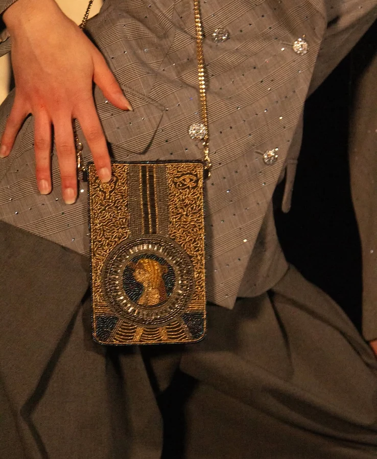 2 modèles présentés en petite série : la pochette & sa chaîne amovible et la pochette téléphone & sa chaîne amovible
