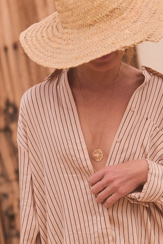 Colliers en plaqué or 18 carats à la couleur dorée champagne et mate ou en argent mate – Longueurs des chaînes 40 / 45 ou 60 cm mentionnées selon le modèle.