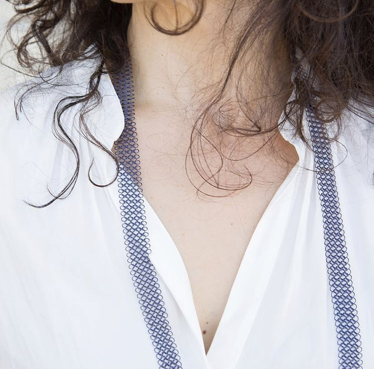 « Un sautoir intemporel à porter aussi bien sur un t-shirt rock, pour parfaire le look d’une robe de soirée ou sur une grosse maille l’hiver… La nouvelle teinte en Titane Bleu s’accordera avec tous vos bijoux. «