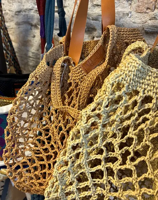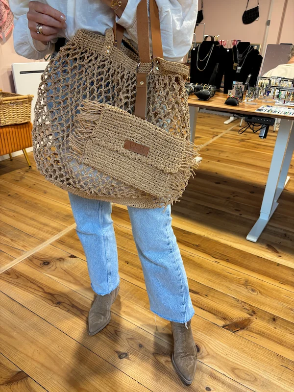 Un sac filet en raphia, très léger avec sa pochette amovible intégrée. Modèle artisanal, fait à la main. Il sera parfait à la plage comme à la ville pour contenir toutes vos pochettes colorées.