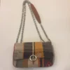 Poches à l’intérieur & Chaîne dorée pouvant être portée en bandoulière ou en double à l’épaule avec une pièce en cuir.
