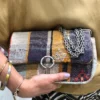 Mini bag en kilim multicolore à l’allure boho-rock pour un look à l’air du temps, créé par la marque française Junon Sacs.